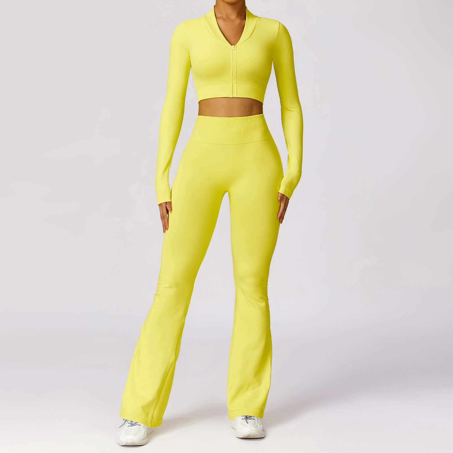 Women’s Casual Tight Seamless Long-sleeved Trousers Yoga Clothes Suit